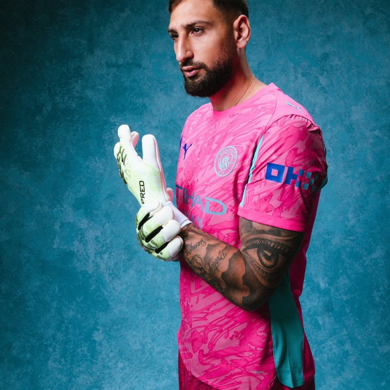 Gianluigi Donnarumma wore the Manchester City goalkeeper shirt for the first time in the Manchester Derby, with James Trafford relegated to the bench.