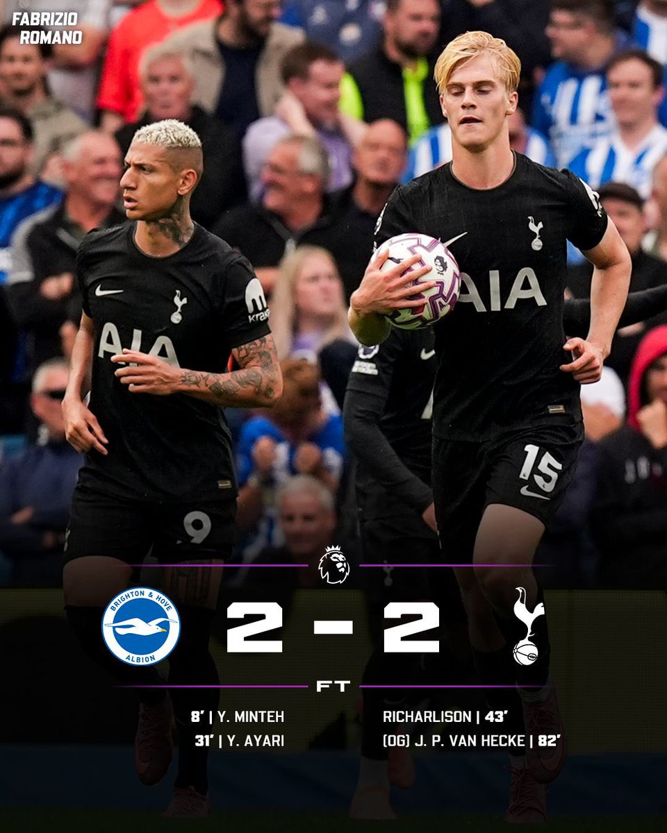 Tottenham Hotspur fought back late to earn a draw against Brighton & Hove Albion at the Amex Stadium, with both sides leaving with a point in an entertaining Premier League match.