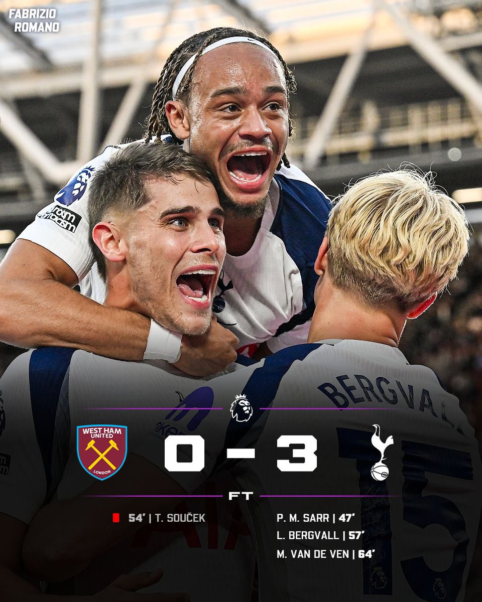 Playing away at West Ham, Tottenham produced a strong performance with a commanding win. They scored three goals and kept a clean sheet in a confident display. The result eases any pressure after a draw last time out and shows the progress made since the start of the campaign. Spurs controlled the match, defending well and attacking with skill. Their defensive record, one goal conceded in four games, highlights their improvement at the back.