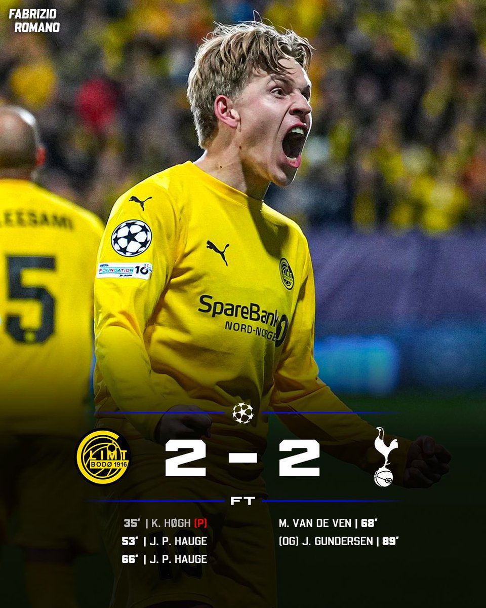 Tottenham Hotspur drew 2-2 against Bodø/Glimt in the Champions League at Aspmyra Stadion on Monday night.
